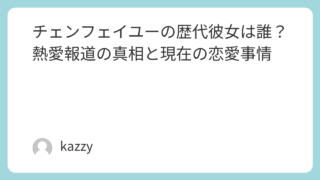 アジア俳優 チェンフェイユーの歴代彼女は誰?熱愛報道の真相と現在の恋愛事情 中国若手俳優の中でも、圧倒的なビジュアルと存在感で人気を集めているのが**チェン・フェイユー**です。日本でもドラマや映画をきっかけに注目度が高まり、「歴代彼女は?」「今付き合っている人はいるの?」といった恋愛に関する検索が急増しています。... 2026.02.18 アジア俳優